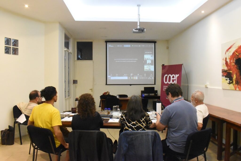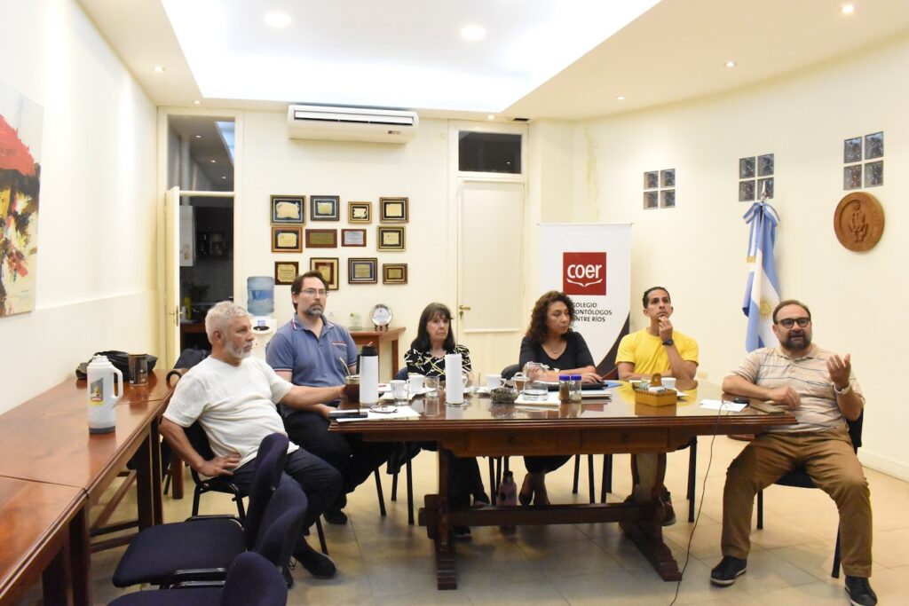En la sede del Colegio de Odontólogos de Entre Ríos se ubicó la mesa de AEPUER que coordinó el encuentro. Estuvieron presentes la Lic. en Obstetricia Alejandra Castillón, Agrim. Francisco Alegre; Abog. Amado Siede; Ing. en Const. Edit Rougier y el Odontólogo, Diego Grubert.